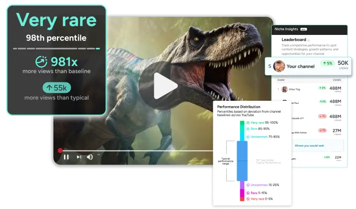Channel Benchmarking allows you to compare your channel’s performance to others in your niche. It highlights key metrics like views, subscribers, and engagement so you can identify areas for improvement and uncover strategies that lead to growth.