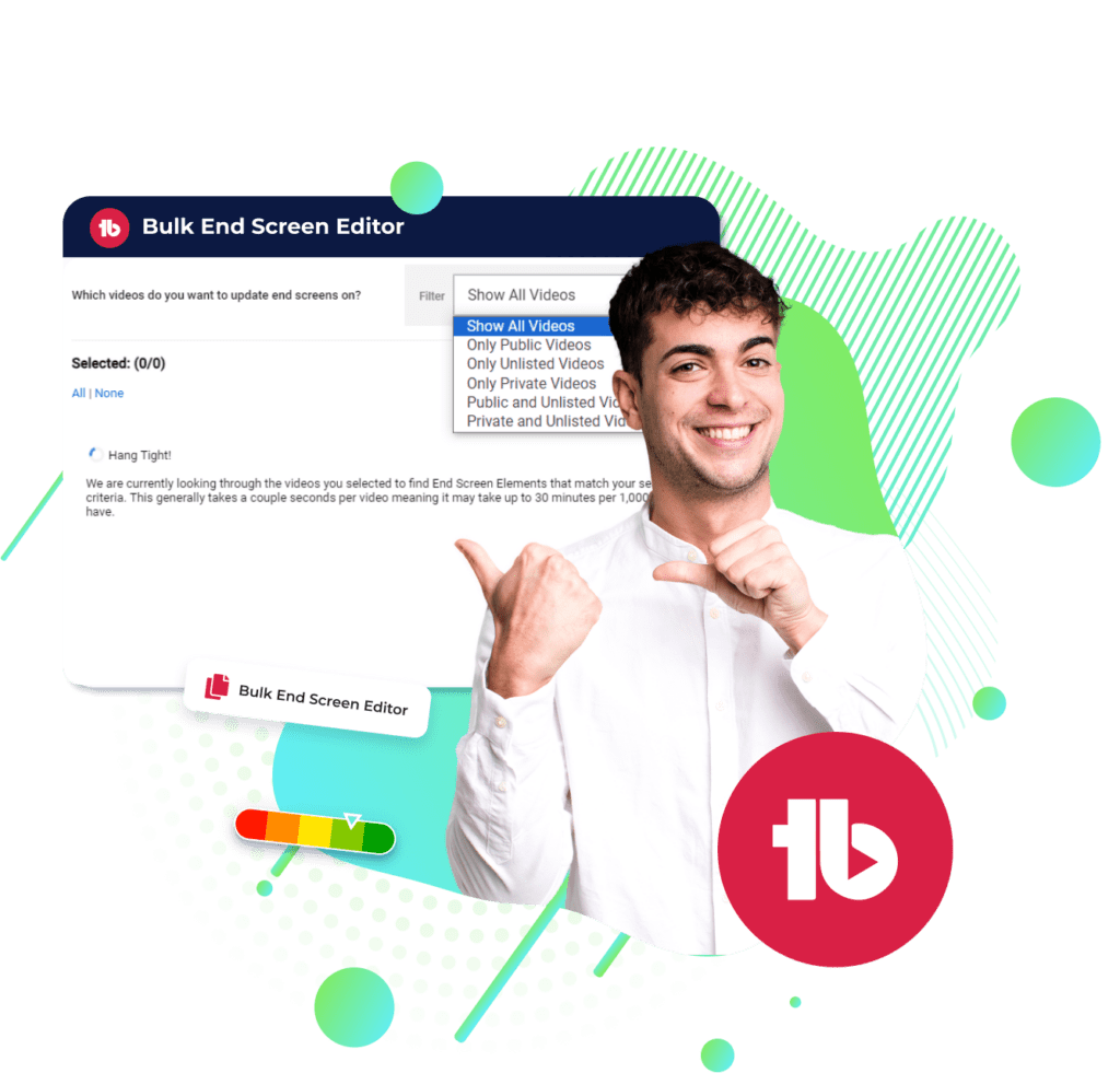 TubeBuddy's Bulk End Screen Editor lets you add, update, edit, and template end screens across all or a selection of your videos with ease. That means more time to brainstorm, shoot, and interact with your fans.
