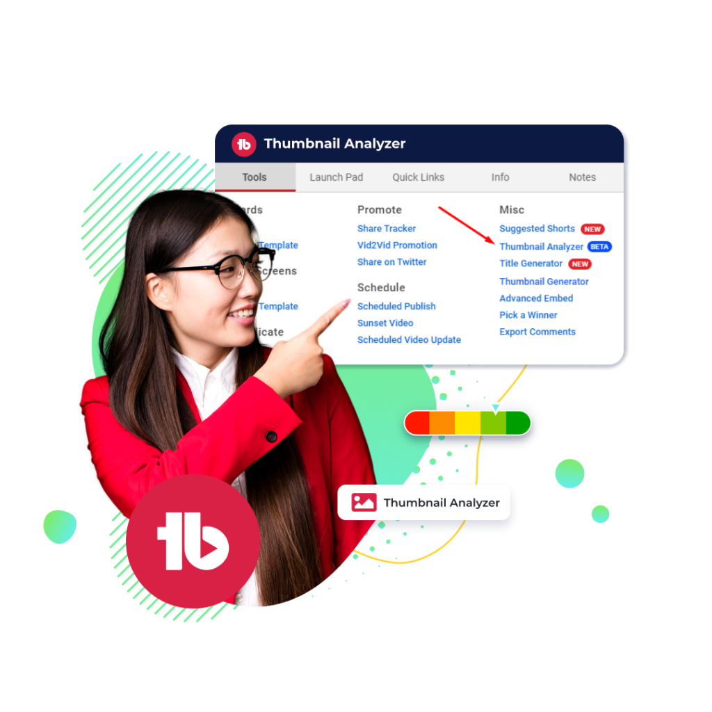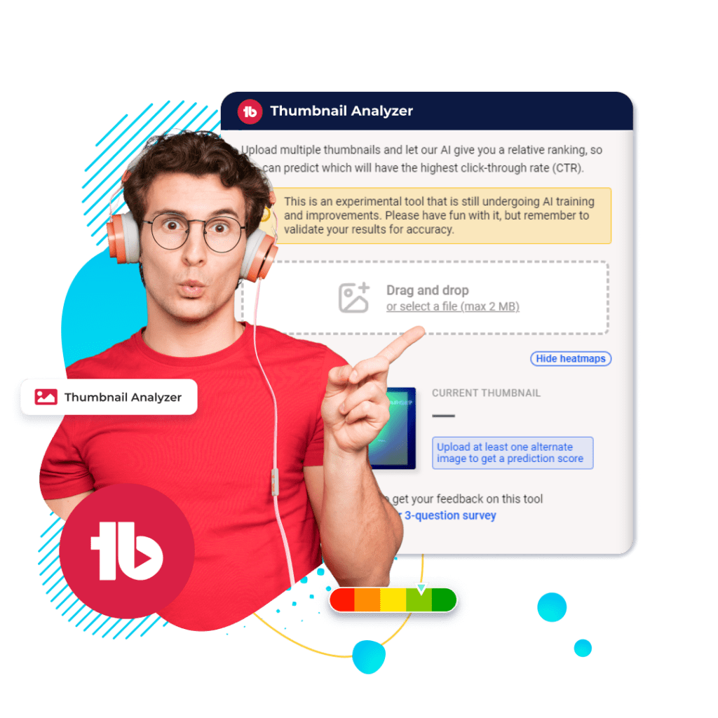 Turn every impression into a click using predictive AI, heatmaps, and performance scoring powered by TubeBuddy Thumbnail Analyzer.