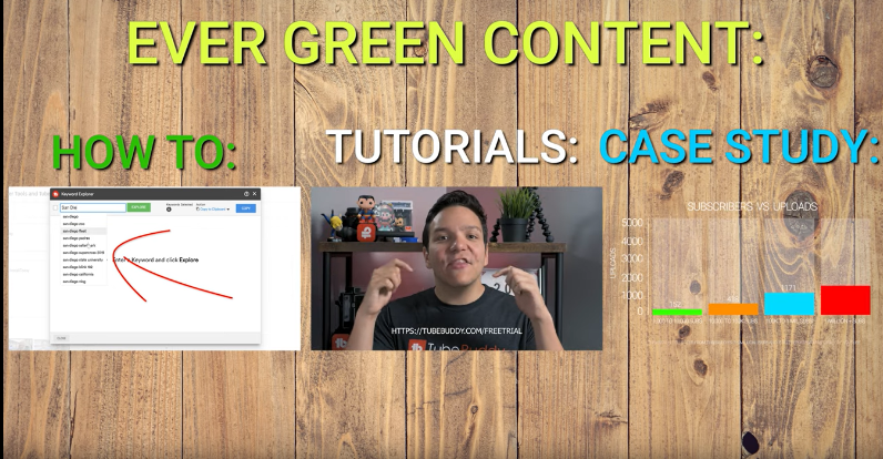 This data is important because it can help you see where you land and whether or not you need to upload more content for maximum exposure. YouTube is the second largest search engine in the world. This means that the users are already there, you just need to find the right content to put you where you want to go. TubeBuddy’s Search Explorer and Keyword Explorer tools can help you identify opportunities to show up in search. If you’re just staring out, a great type of video to make is called evergreen content.