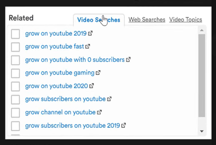 The Video Searches section shows you what people are actually searching on YouTube and can help you modify your keywords.