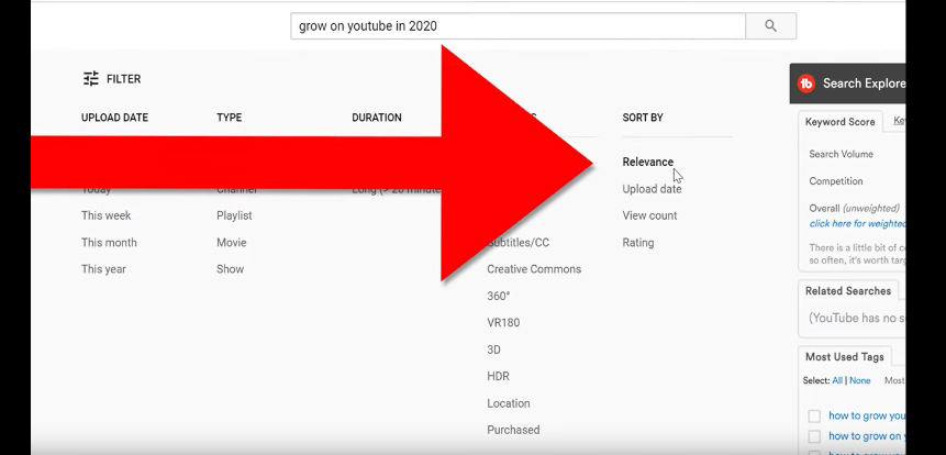 It’s important to repeat your title in both the description and tags because YouTube’s default setting is to sort searches by relevancy.