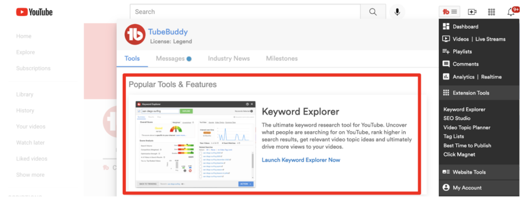 Use the TubeBuddy Keyword Explorer tool on YouTube to see keyword suggestions pop up based on what people are looking for.