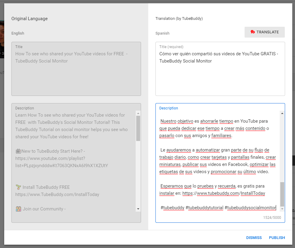 With TubeBuddy’s Auto Translator feature, you can easily translate your video titles and descriptions into multiple languages to increase your global viewership. This can help improve the visibility and relevance of your videos across different regions and cultures, attracting new viewers and growing your audience.