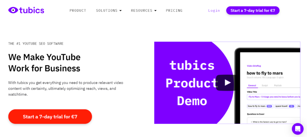 3. tubics: Best for Mid-sized Businesses for YouTube SEO Optimization