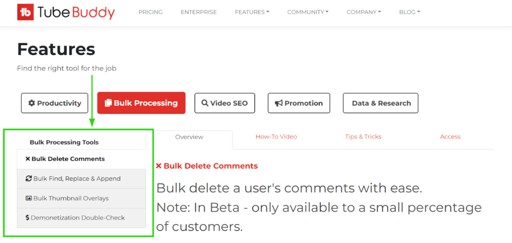 With features like Bulk Delete Comments and Bulk Find, Replace & Append, creators can make large-scale changes to their channel in just a few clicks.