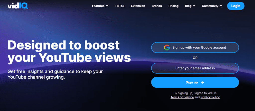 vidIQ’s free Chrome extension provides unique optimization data that help improve video performance, engagement, and promotion opportunities. It also offers real-time insights and suggestions for effective content optimization.