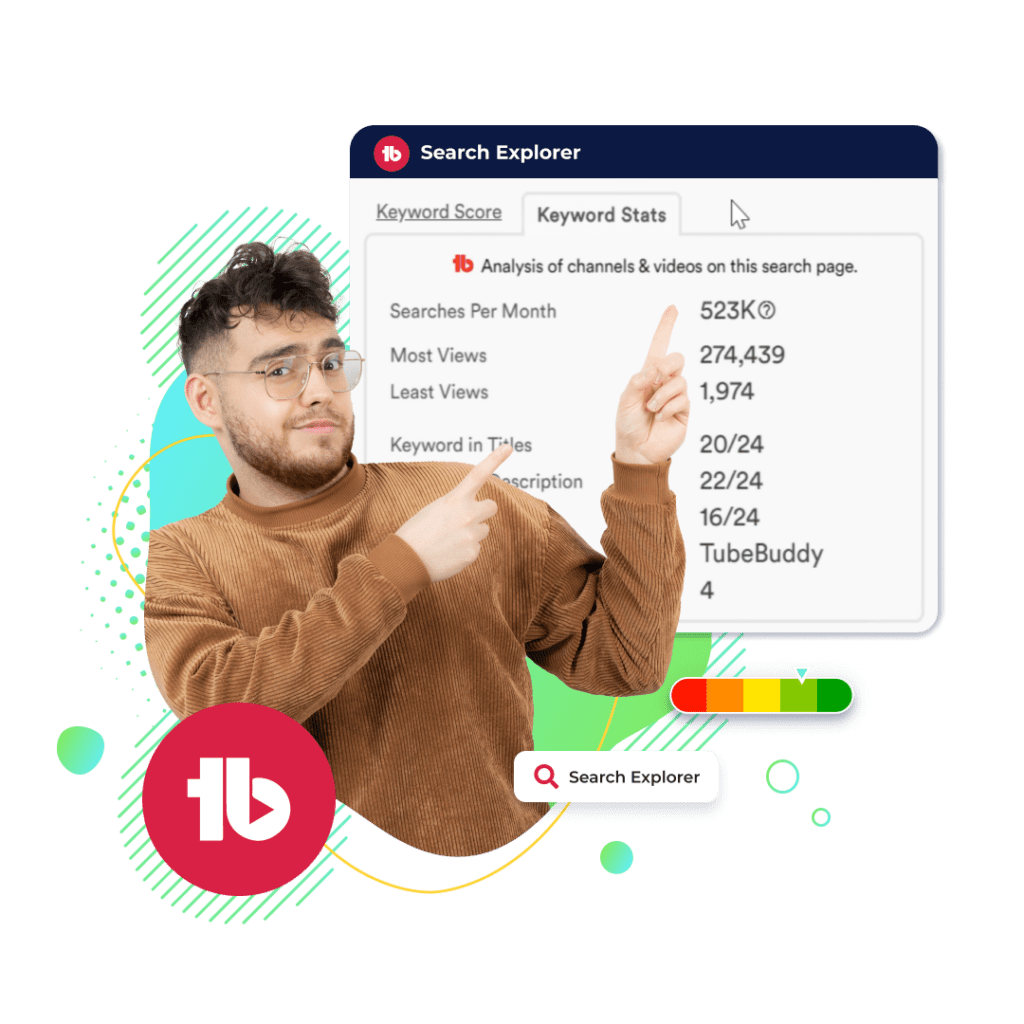 TubeBuddy Search Explorer is a YouTube keyword research tool that appears directly within YouTube’s search results. It helps creators discover high-traffic, low-competition keywords in real time, making it easier to plan and optimize content that ranks better and reaches more viewers.