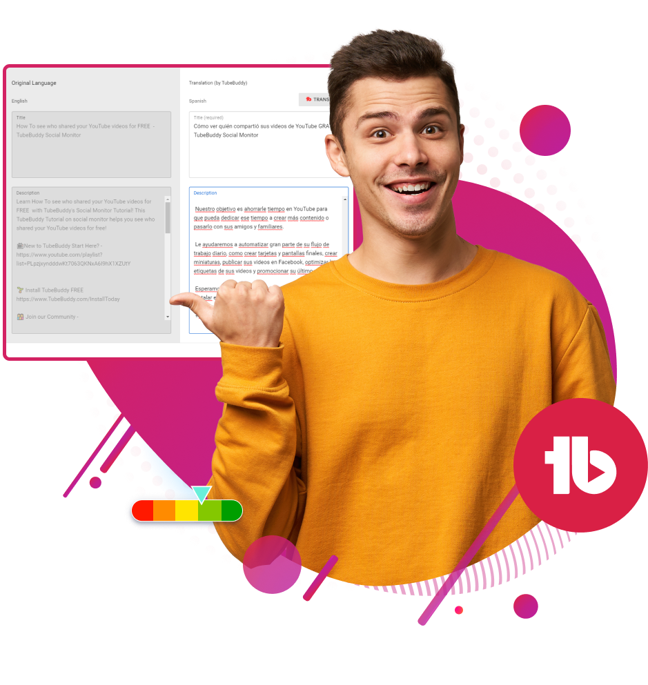 Yes. TubeBuddy’s translator YouTube video tool can translate your titles, descriptions, and tags, ensuring your content is optimized for international viewers. This enables your video to appear in non-English search results and recommendations.