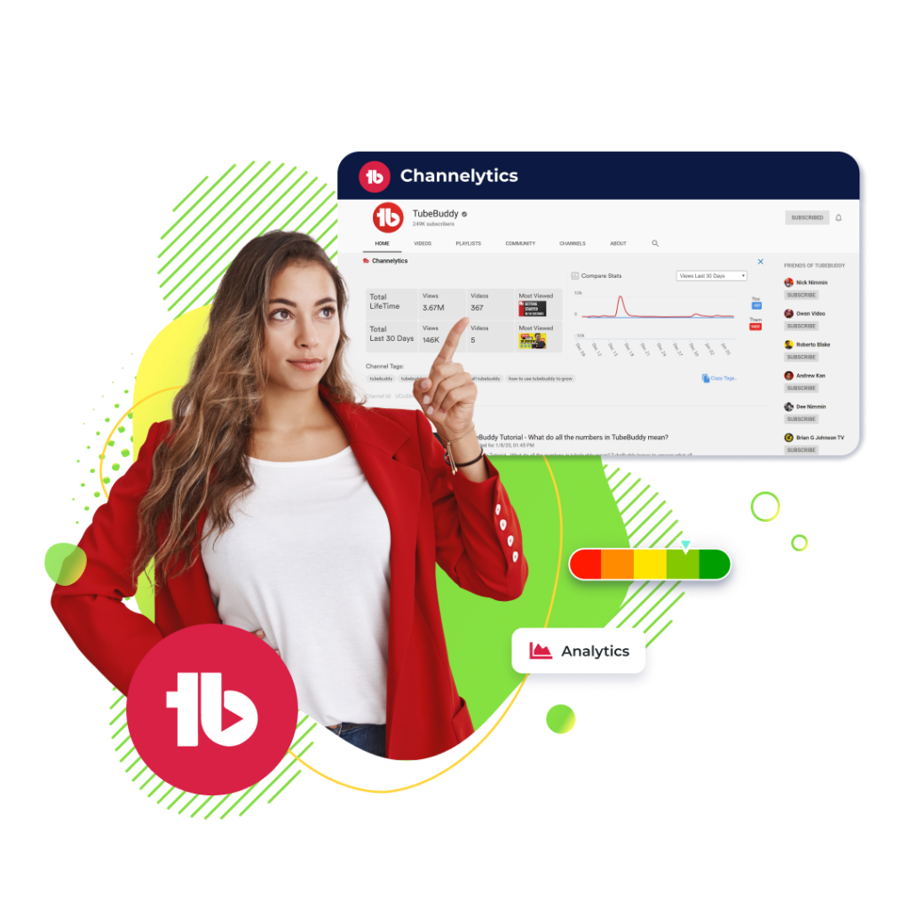 Make smarter decisions using a powerful YouTube channel analytics tool. TubeBuddy Channelytics helps you track YouTube competitors, monitor growth trends, and uncover clear YouTube performance insights that expose gaps in your content strategy.