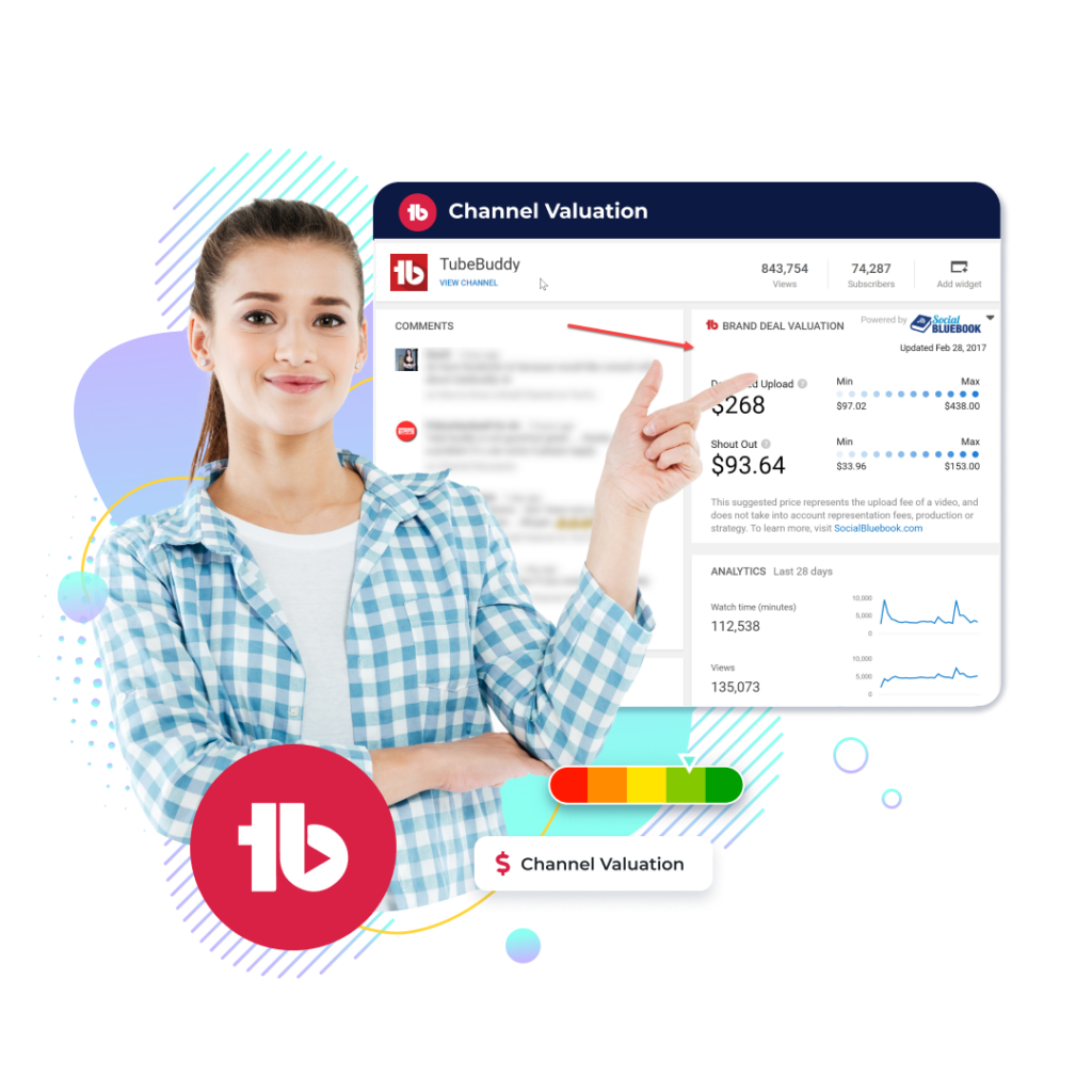 TubeBuddy’s valuation tool analyzes subscriber count, average video views, and engagement rates. It also considers real-world brand deals of similar creators to provide a comprehensive estimate of your channel’s financial value.