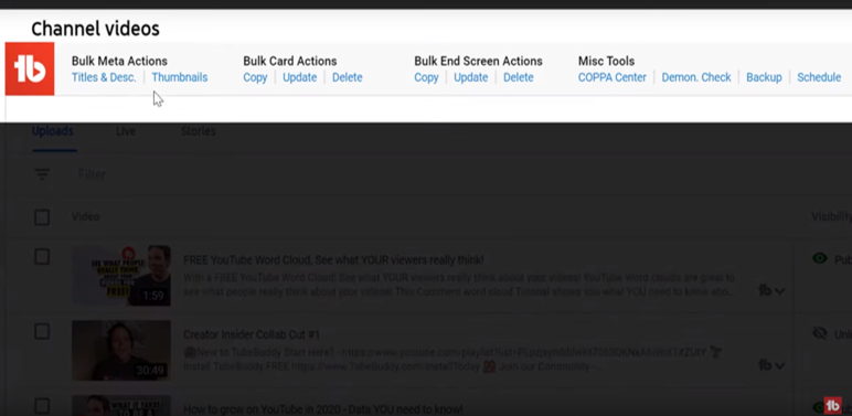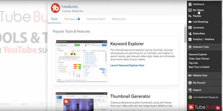 Go to the “My Videos” section of the TubeBuddy Drop Down Menu.