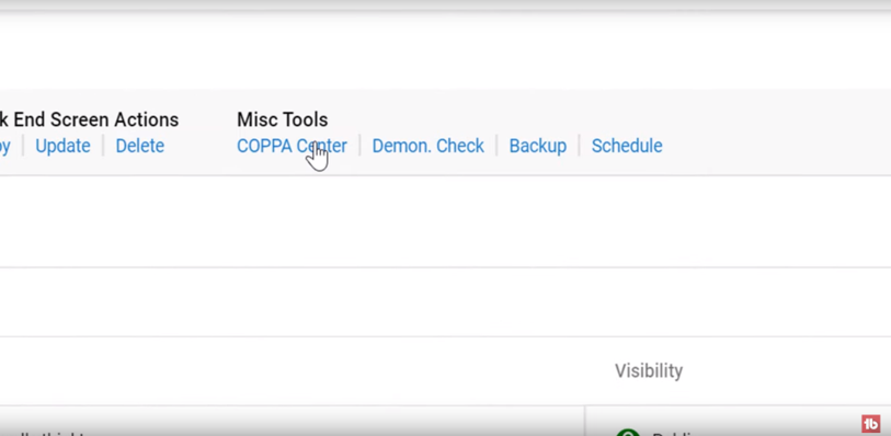 To the right of that, you’ll see Misc Tools where you’ll click on COPPA Center.