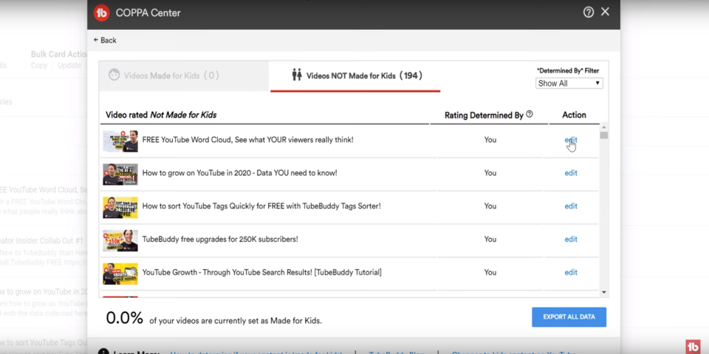 TubeBuddy wants to help you comply with the new regulations. Take a few minutes to watch our video and look through these simple screenshots to save yourself a lot of potential time and future trouble.