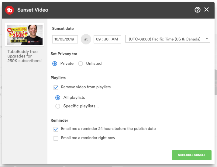 #1 Sunset and Schedule Publish Unlisted Videos: