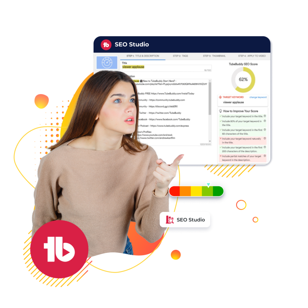 TubeBuddy SEO Studio helps improve your video rankings by optimizing metadata, suggesting relevant keywords, and tracking performance. It increases your video’s discoverability, saves time, and ensures that your content aligns with YouTube SEO best practices.