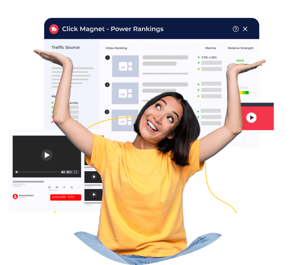 Use Click Magnet’s Power Rankings and Advanced Analytics to compare metrics like CTR, watch time, and viewer interaction before and after you apply its suggestions to your videos.