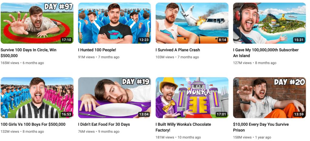 Using click-worthy custom YouTube thumbnails is an incredibly effective way to grab attention and boost your CTR rate. Read our three quick tips to help your custom thumbnails pop on YouTube, and also study your favorite creators for inspiration on their approach. For instance, MrBeast is a genius at creating thumbnails that jump out at you and are easily identifiable as his trademark content. He discovered a successful formula and continues to build on it.