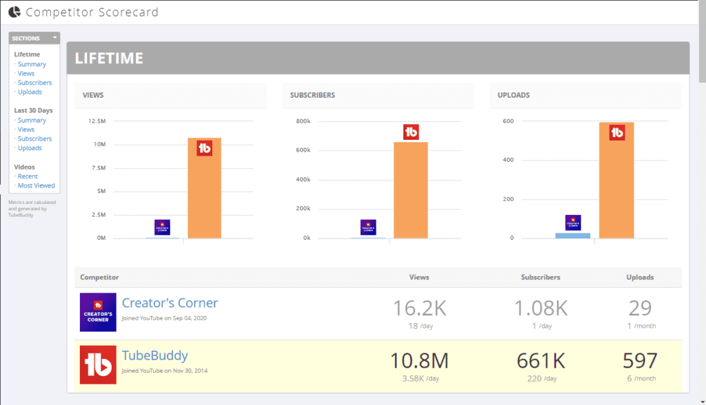 You can also use TubeBuddy’s Competitor Scorecard tool to compare your channel against your competitors over the last 30 days or longer. This will give you insights into what strategies – or fundamentals – are actually working for those channels so you can take note of them.