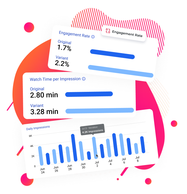 - Test for a variety of metrics, including click-through rate, total engagement, traffic sources, watch time, and more.